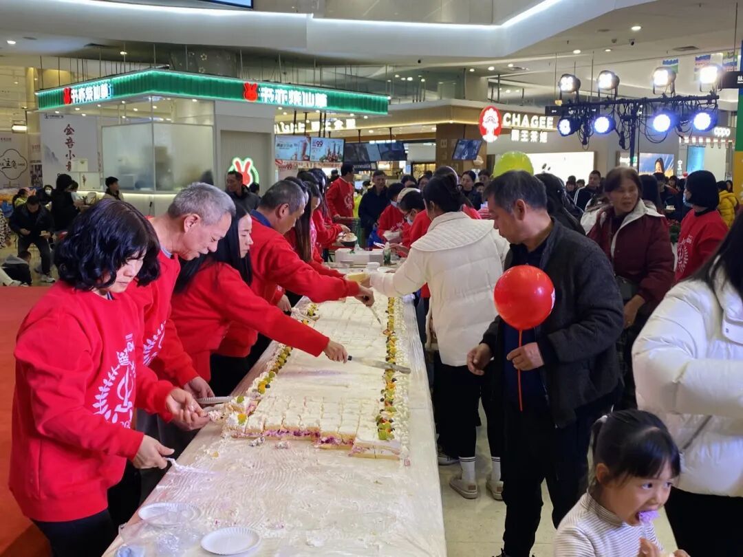 分享会上,商场代表登台致辞,深情回顾十二年来商场的成长历程,细数与消费者相伴的温暖瞬间,诚挚感谢社会各界与广大顾客的一路信任与支持。致辞完毕,现场工作人员携手切开巨型蛋糕。大家有序分发,一块块承载感恩与祝福的蛋糕送到顾客手中。香甜在舌尖蔓延,笑容在脸庞绽放,排成长龙的领糕队伍,成为中庭最温暖的风景线,小小的蛋糕串联起商场与顾客十二年的深厚情谊。