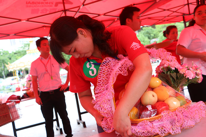 汉阳城际区域3000多名员工中选拔产生的近200名选手,冒雨进行了精肉分割、剖解鲜鱼、巧扎果篮、精准计量、消防防损、理货陈列、营销推介等九个方面的竞赛比拼。无论是生鲜操作台,还是理货区货架端头旁;无论是刀功手工的技巧展示,还是脑力体力的意志力检验;无论是团队综合实力的考量,还是个人才艺的竞技;无论参赛队员,还是裁判工作人员,一个个沉着应战,忙而不乱。严格遵循竞赛规则和评分标准,通过公平、公正、公开的操作,既增强参赛者的获奖信心,更促进提高学习能力、创新能力和服务能力。