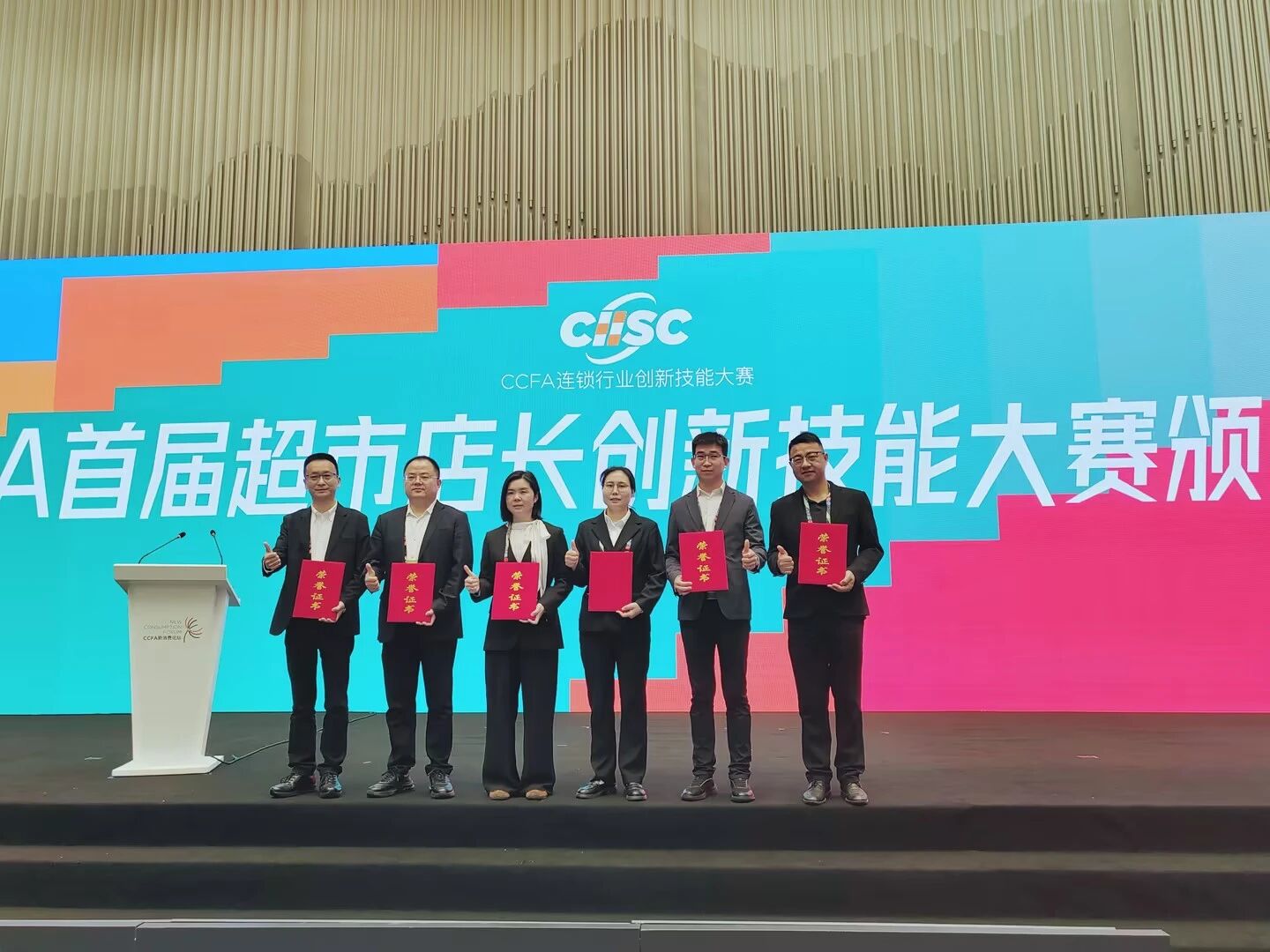 4月16日,首届“超市店长创新技能大赛”决赛在浙江杭州圆满落幕。该赛事由中国连锁经营协会(CCFA)主办,吸引了全国众多优秀单位参与。中百仓储超市对此高度重视,经严格选拔,公司中百·邻里汇古田店经理张守鹏、恩施和润城店经理杨荣、家盛时代店经理周伶俐、越秀国金店经理邓凯、咸宁店经理任康敏、商品采销中心生意发展部高级经理汪平等六位优秀选手代表企业组队参赛。