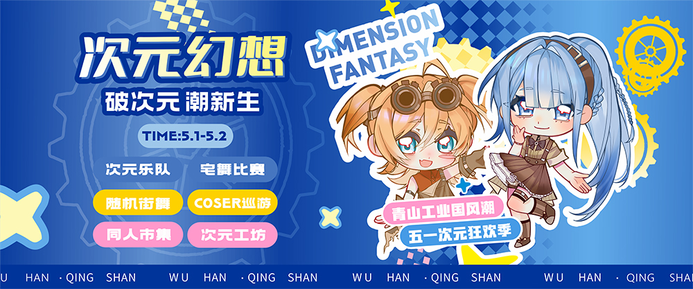 此次“次元幻想”主题活动,深度结合青山本土工业底蕴,匠心打造活动专属Q版人物形象,巧妙融入电焊眼镜、工业手套、齿轮腰带等特色工业元素,将地域人文与二次元潮流创意深度融合,形成独有的视觉标识,全方位营造浓厚的次元氛围,让市民一进场就能沉浸式感受潮流与工业碰撞的魅力。